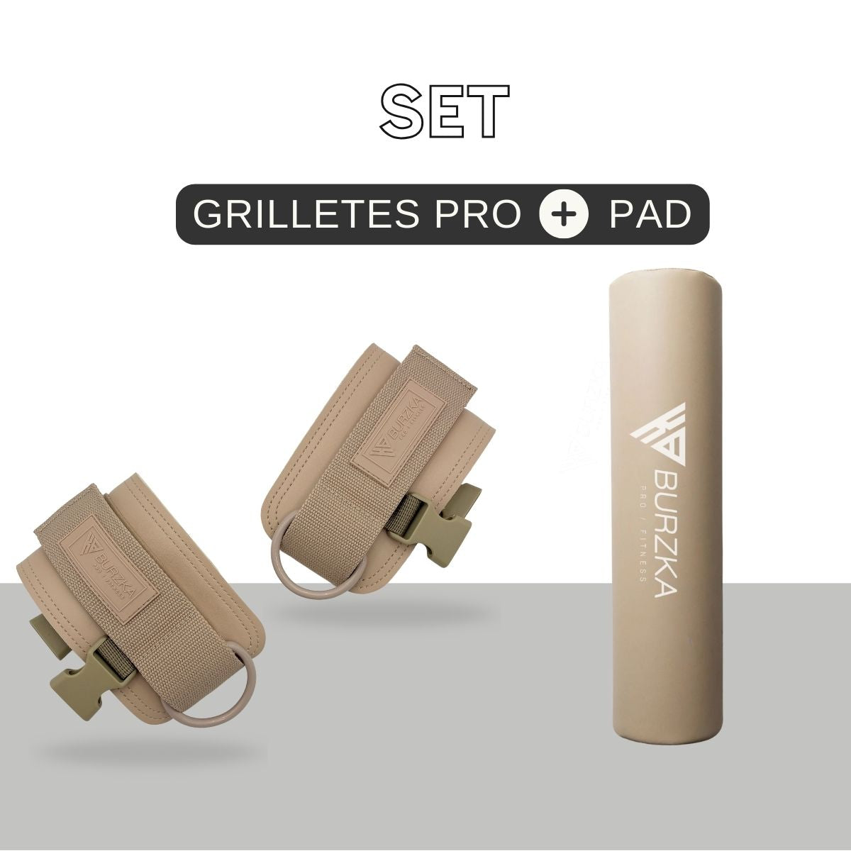 Incluye el Pad Burzka para hip thrust y los Grilletes Bright Essentials, una combinación pensada para darte comodidad, estabilidad y control en cada repetición.