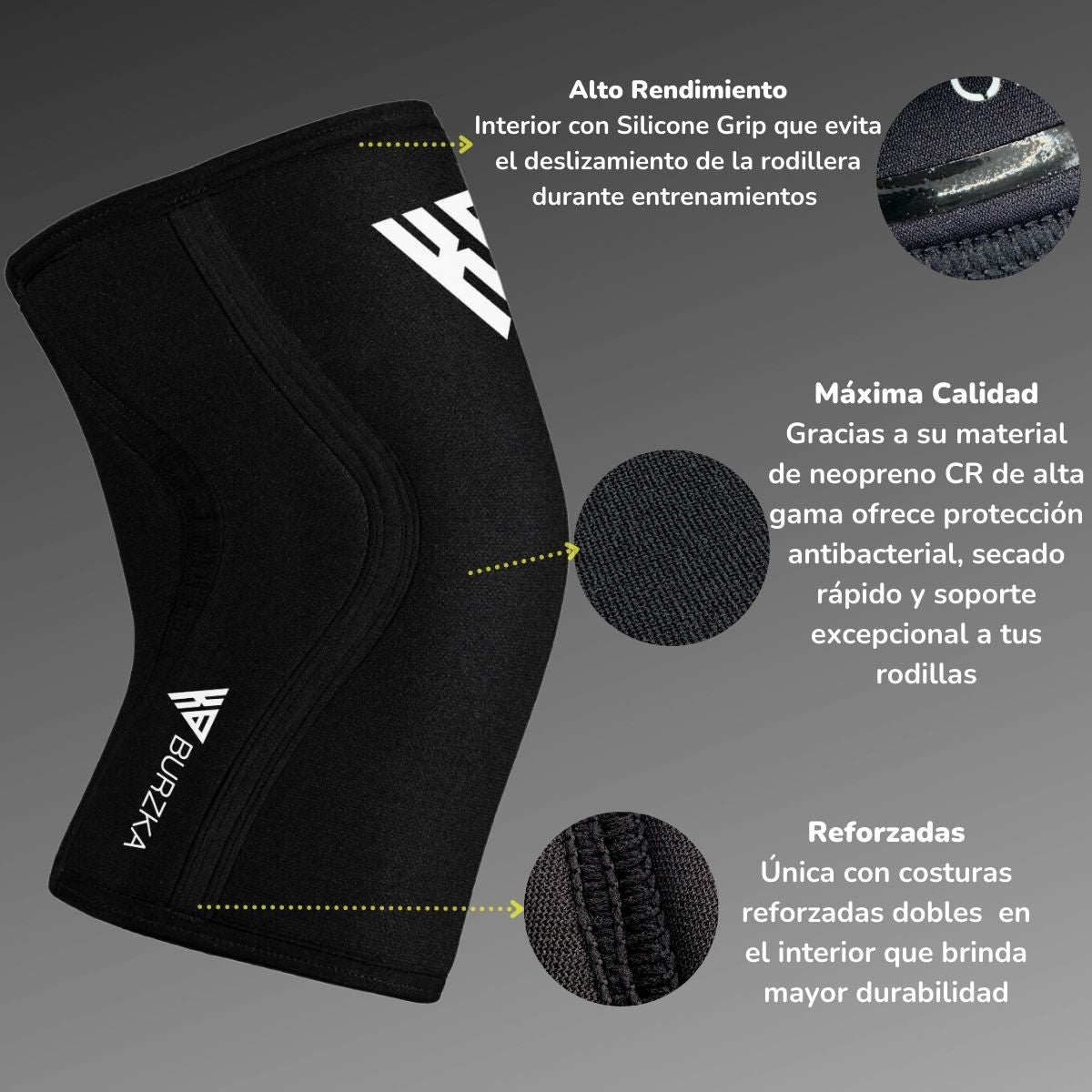 Las Rodilleras 7mm aportan compresión densa y soporte estructural en sentadilla.